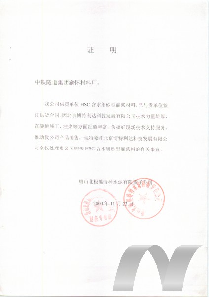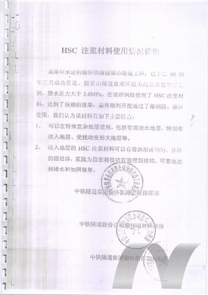 HSC含水細砂型注漿材料具有突出的可注性及一定的抗水性,適當的操作時間及硬化時間。